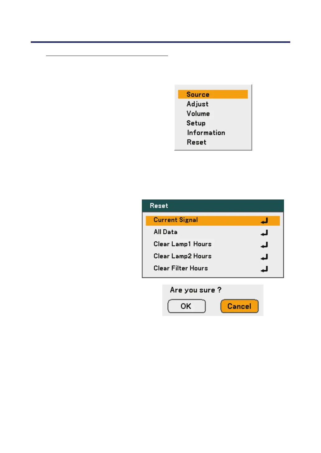 After replacing the lamp(s), the lamp hour counter(s) should be reset to zero. Refer to