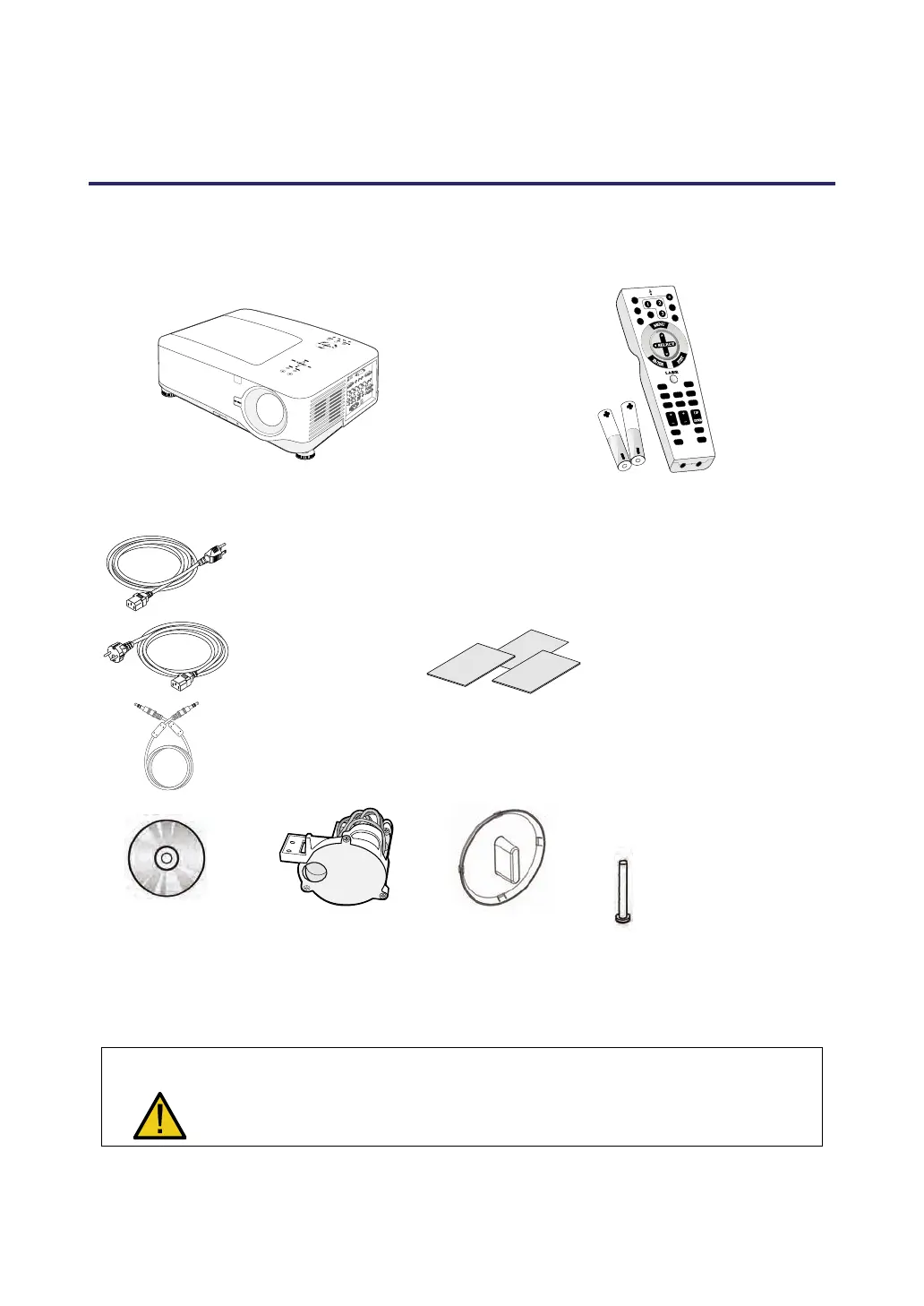 Carefully unpack the projector and check that the following items are included: