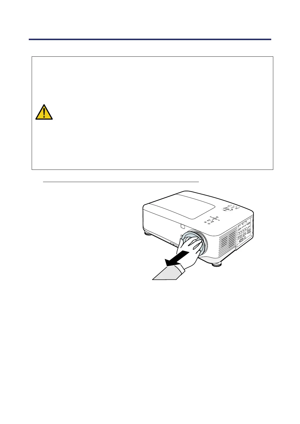• Before removing or installing the lens, be sure to turn off the projector, wait