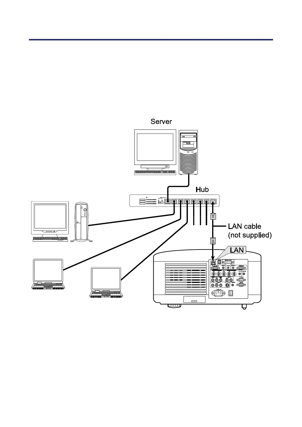 The projector comes standard with a LAN port that provides network connectivity using a