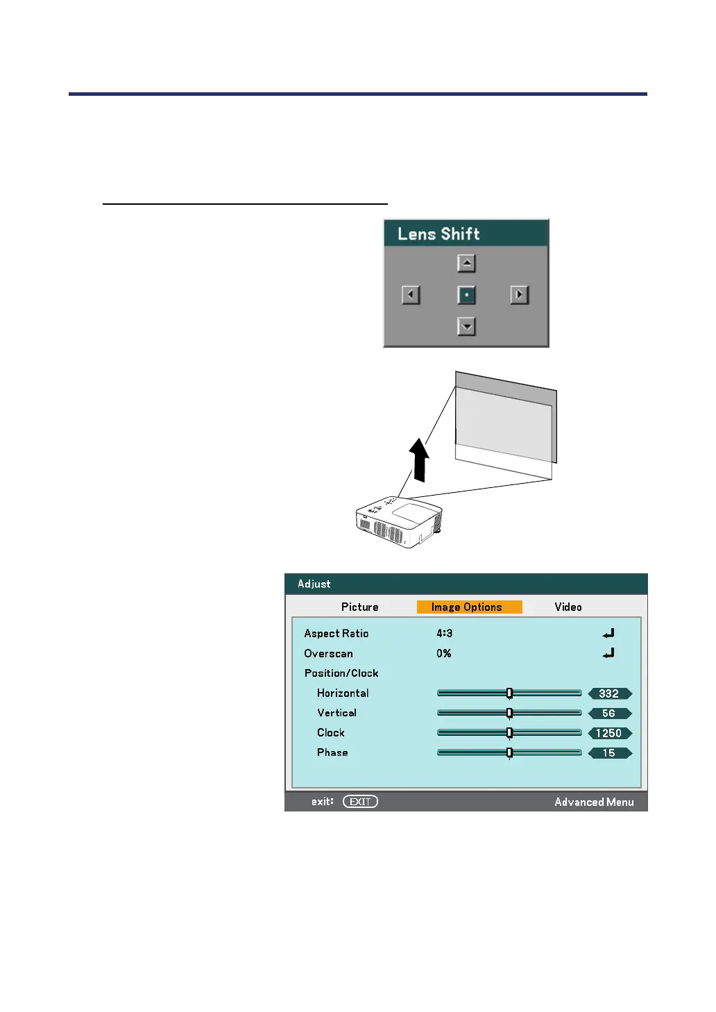 from the remote control unit. Refer to the following guides to adjust Picture Position manually.