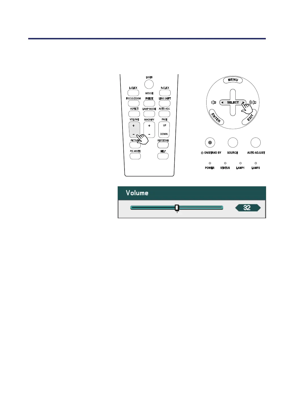 The volume can be adjusted from the OSD Control Panel or with the Remote Control unit.