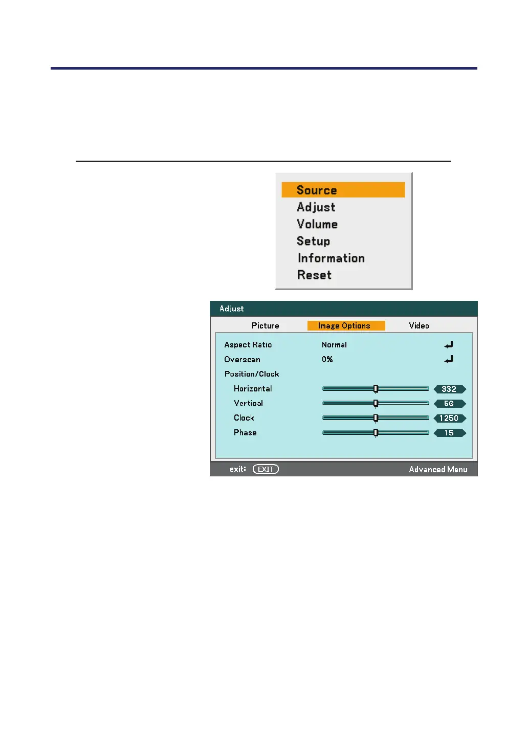 The Position/Clock/Phase and Keystone Correction can be adjusted manually from the pro-
