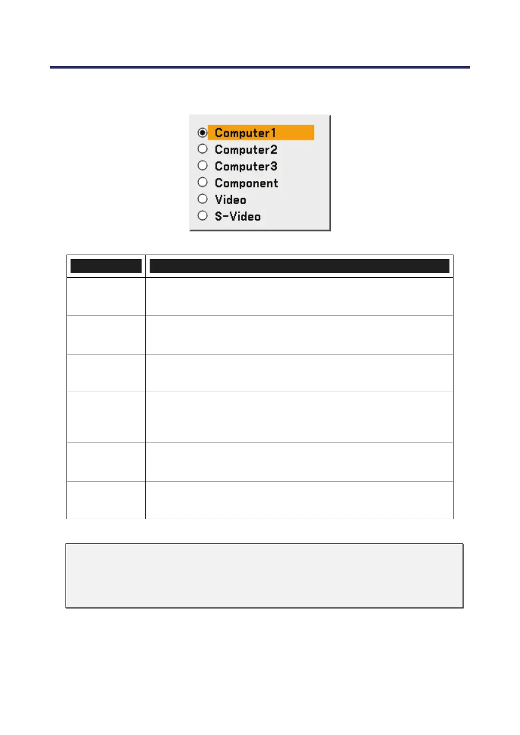 Select the required source from the menu using ▲ or ▼ and press Enter to confirm.