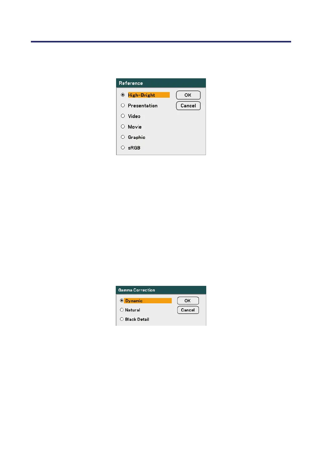 Dynamic – Allows the projector to dynamically alter the gamma correction automatically.