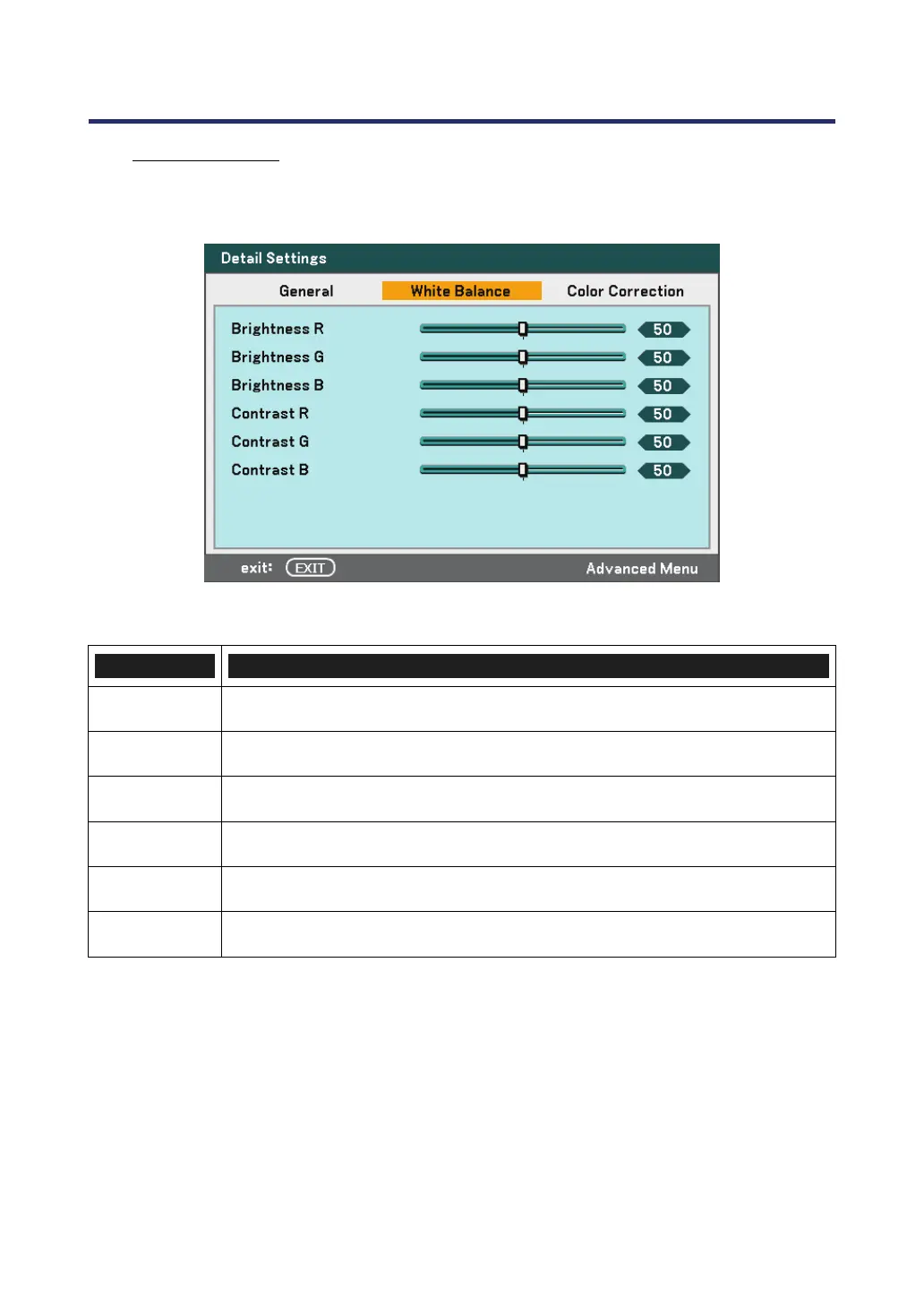 Brightness R Set the Brightness R value to compensate for red light sources.