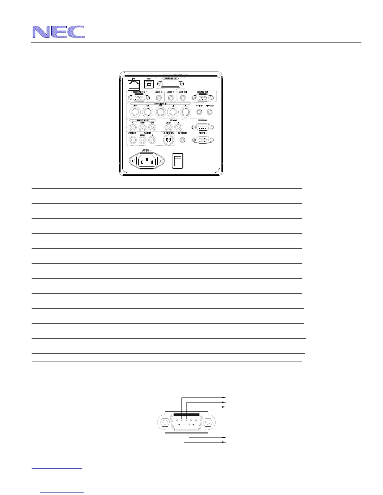 NOTE: Pins 1, 4, 6, and 9 are used inside the projector.