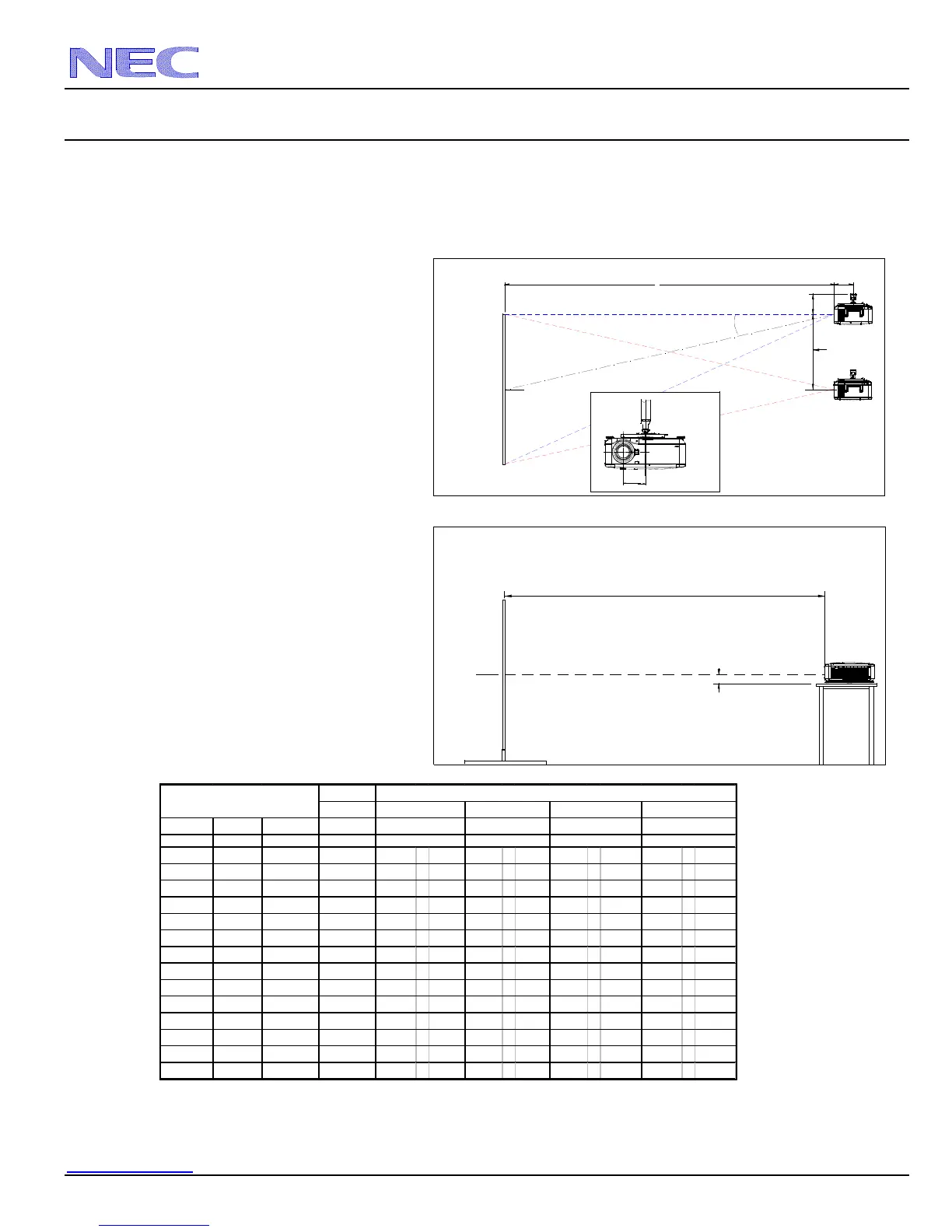 The following shows the proper relative positions of the projector and screen. Refer to the table to determine the position of installation.