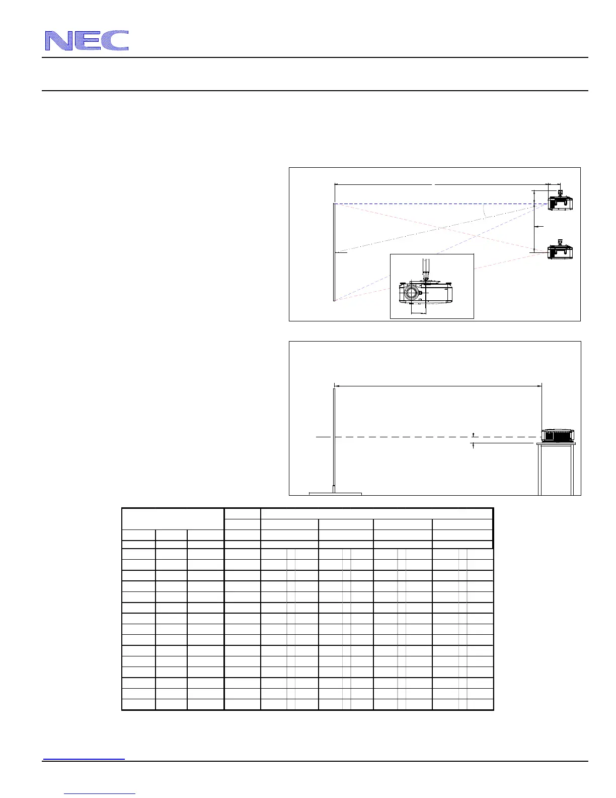 The following shows the proper relative positions of the projector and screen. Refer to the table to determine the position of installation.