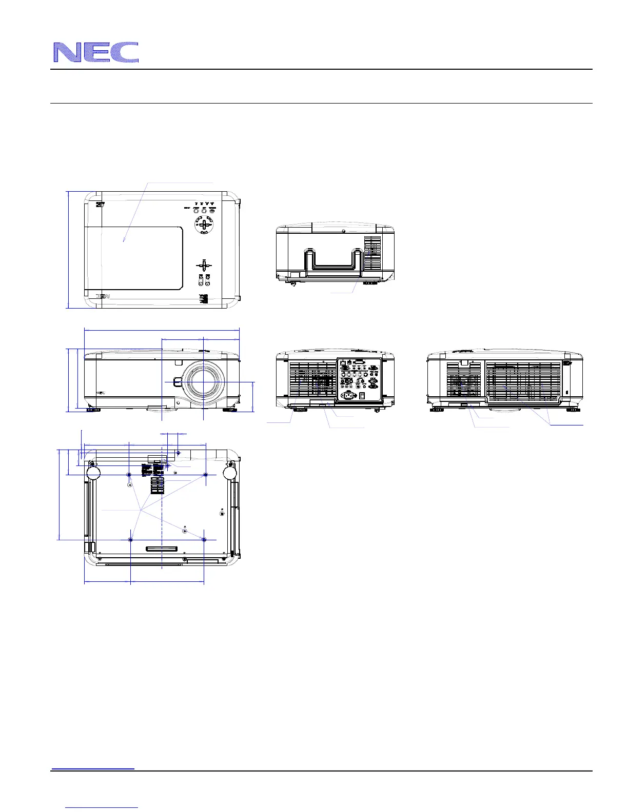 The following diagrams show the cabinet dimensions for the NP4100W.