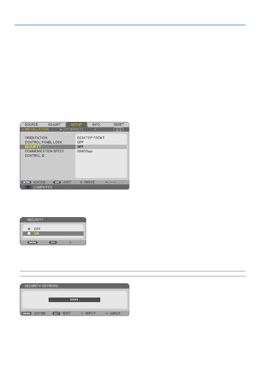 AkeywordcanbesetforyourprojectorusingtheMenutoavoidoperationbyanunauthorizeduser.Whenakey-