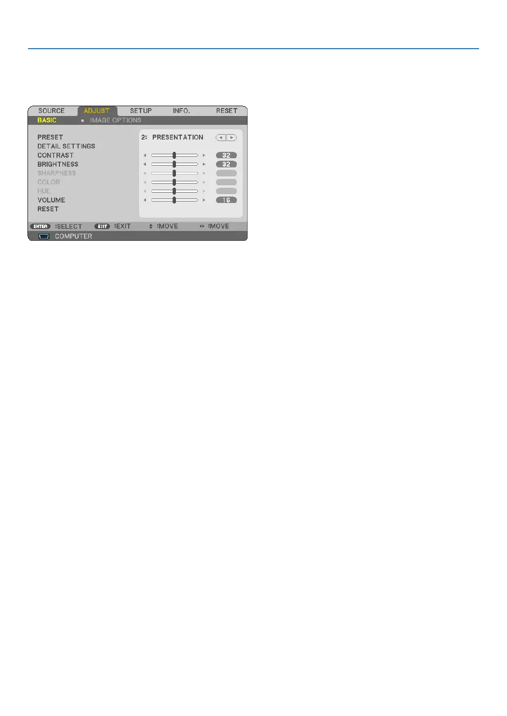 Yoursettingscanbestoredin[PRESET1]to[PRESET6].