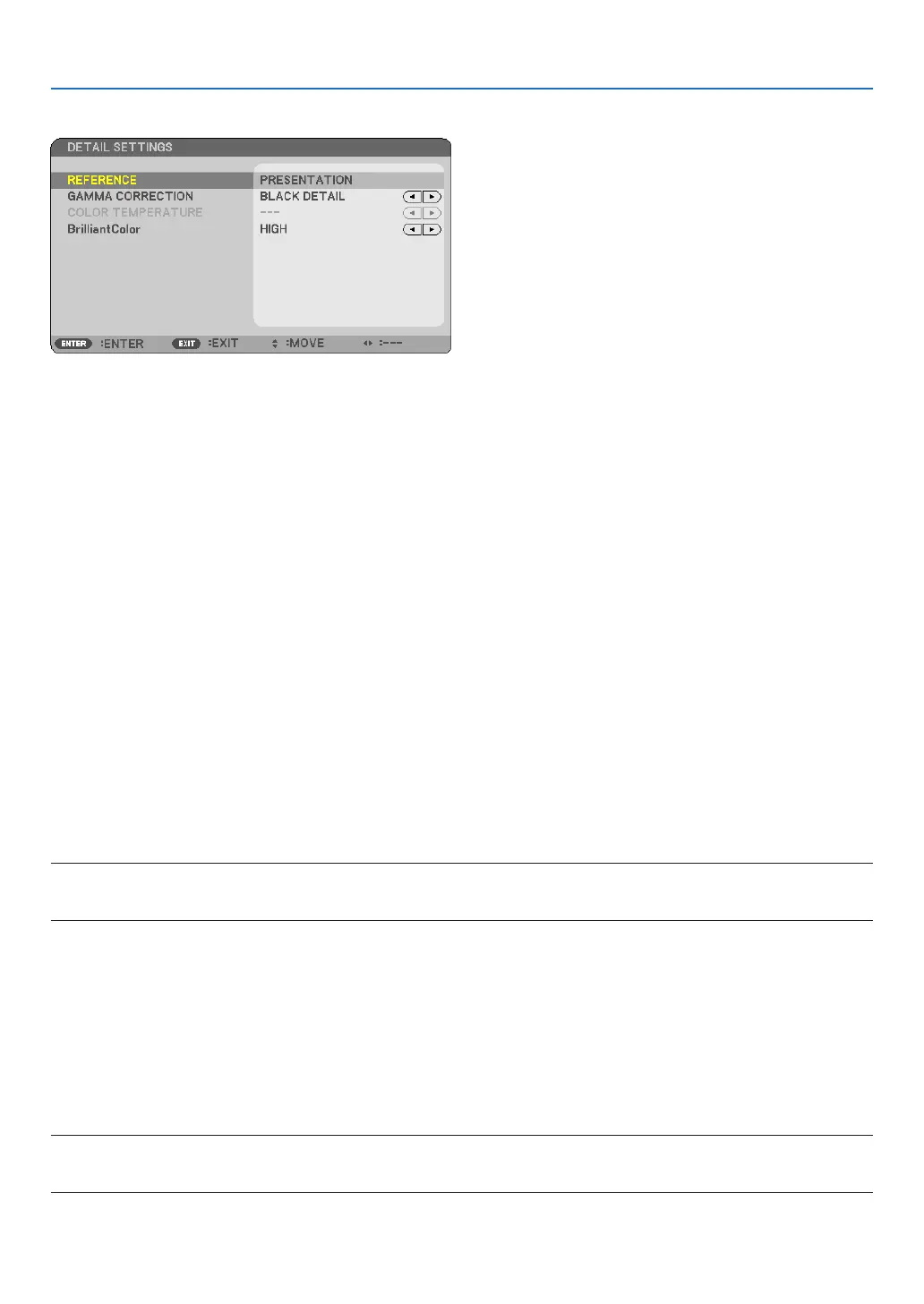 • [BrilliantColor]canbesetto[MEDIUM]or[HIGH]when[PRESENTATION]isselectedfor[REFERENCE]