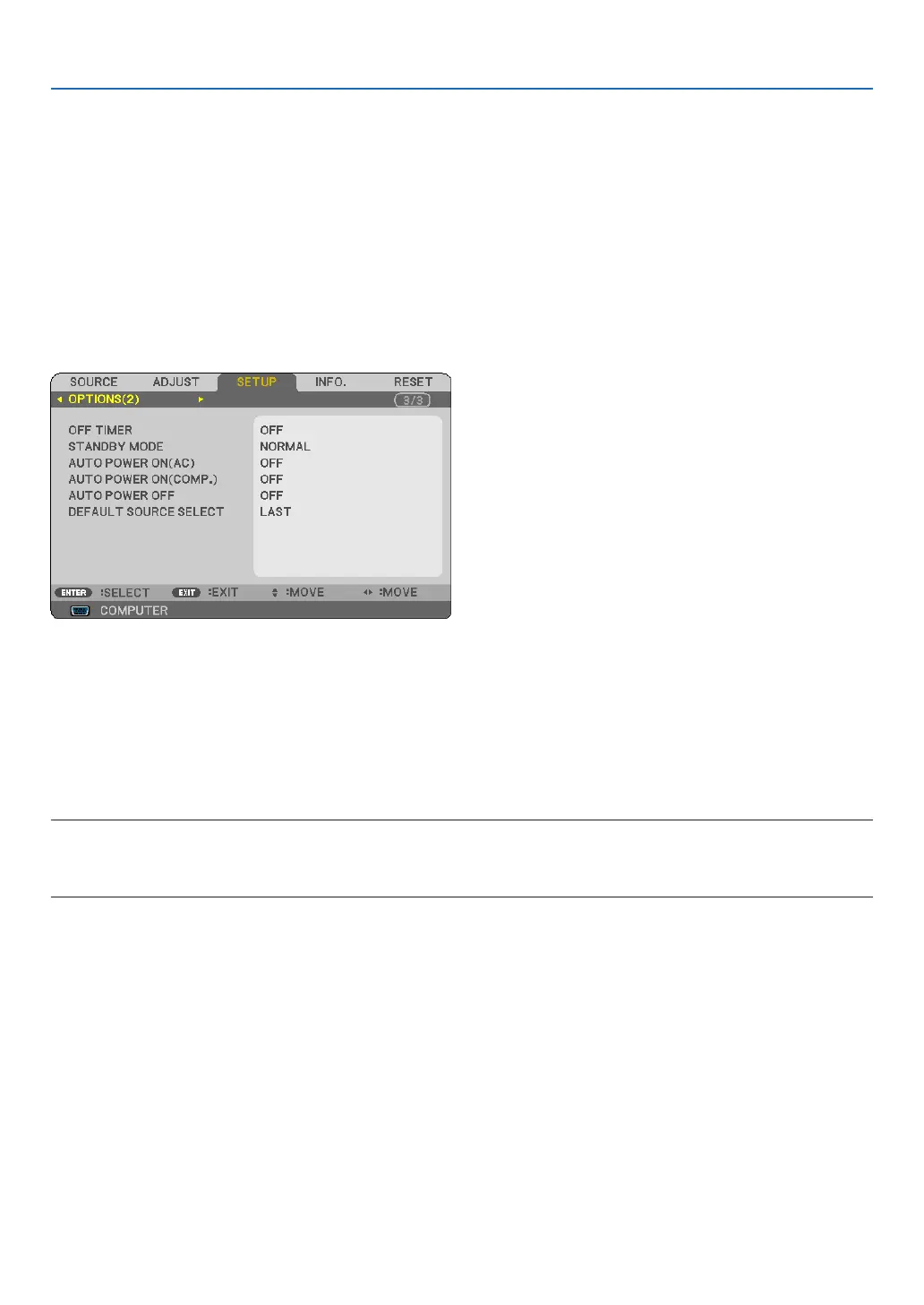 Theremainingcountdowntimewillbedisplayedatthebottomofthemenuwhenthe[OFFTIMER]ispreset.