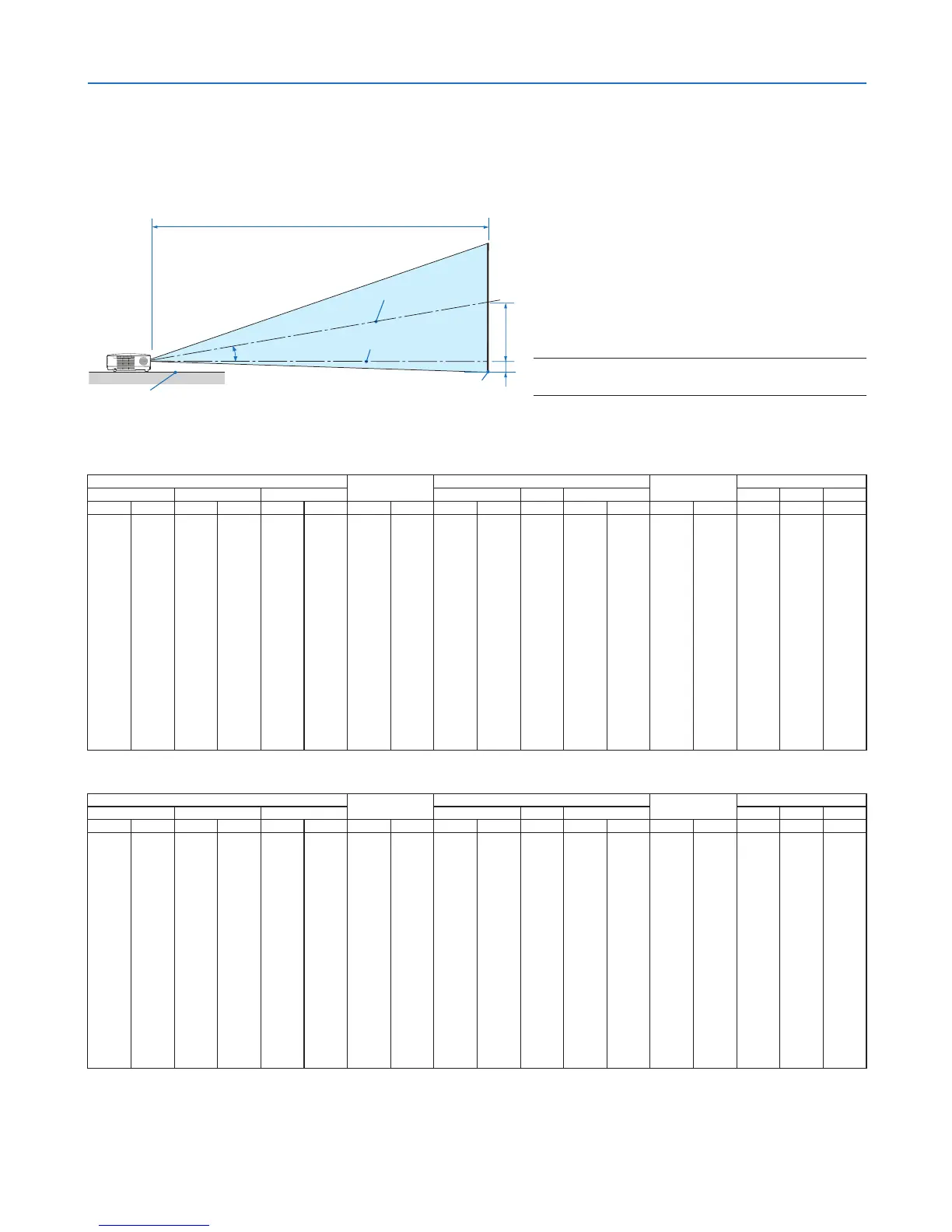 The following shows the proper relative positions of the projector and screen. Refer to the table to determine the
