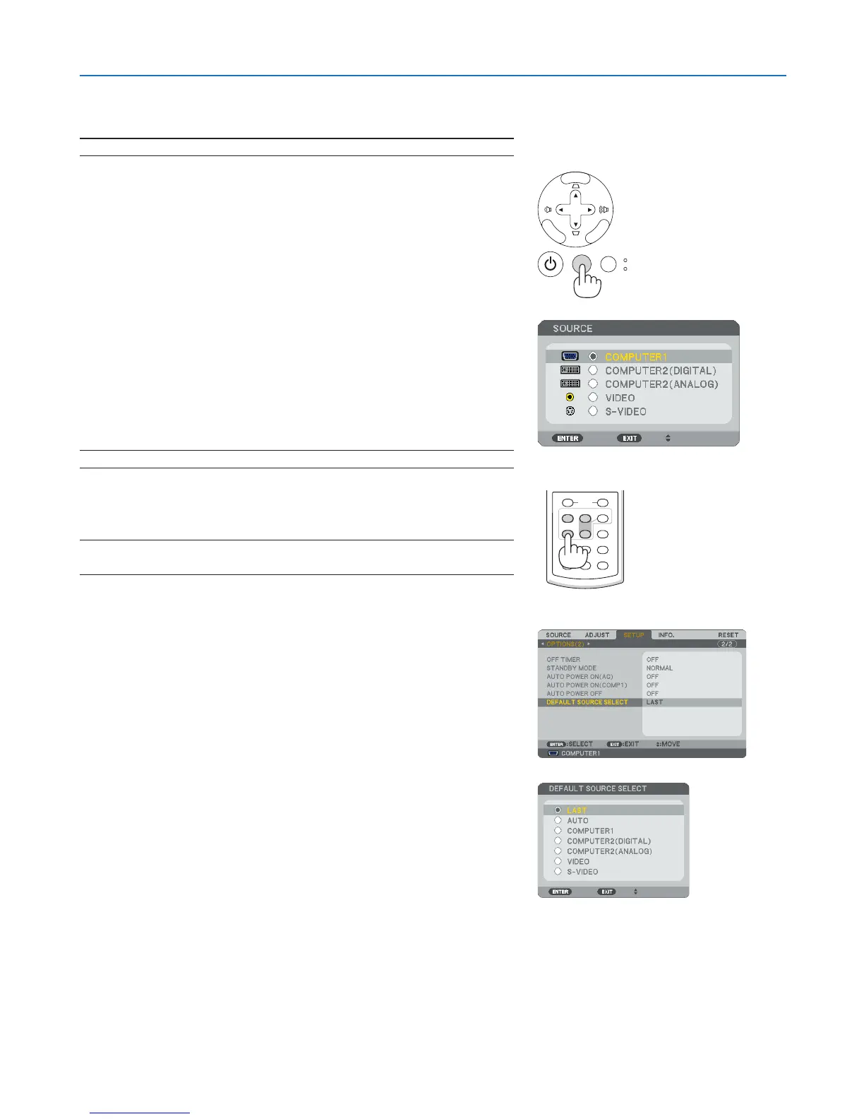 The [DEFAULT SOURCE SELECT] screen will be displayed.