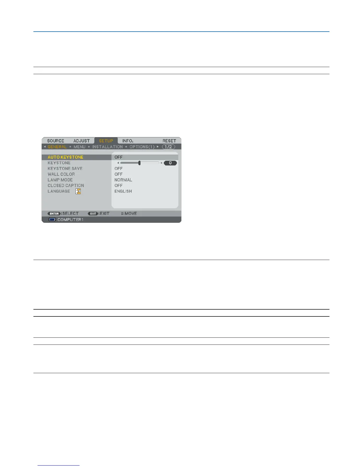 TIP: Even when the menu setting for [AUTO KEYSTONE] is turned on, [KEYSTONE] can be adjusted manually.