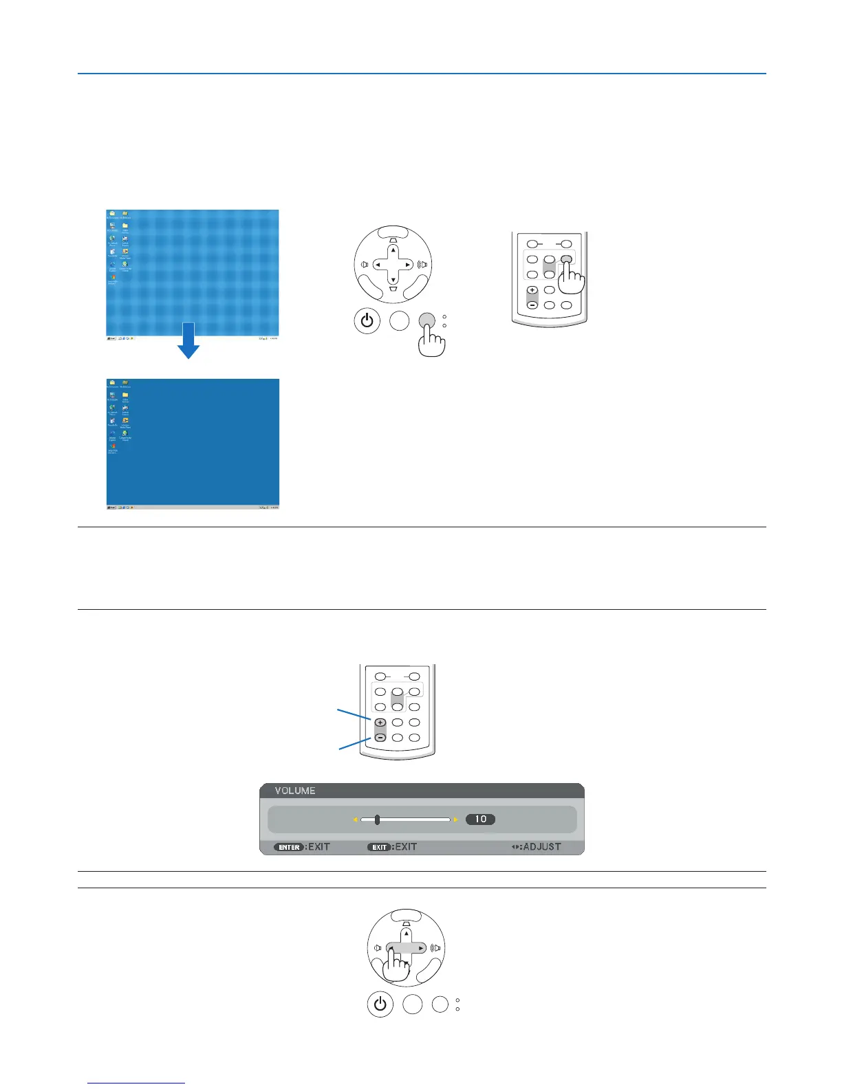 • If the Auto Adjust operation cannot optimize the computer signal, try to adjust [HORIZONTAL], [VERTICAL], [CLOCK], and [PHASE]