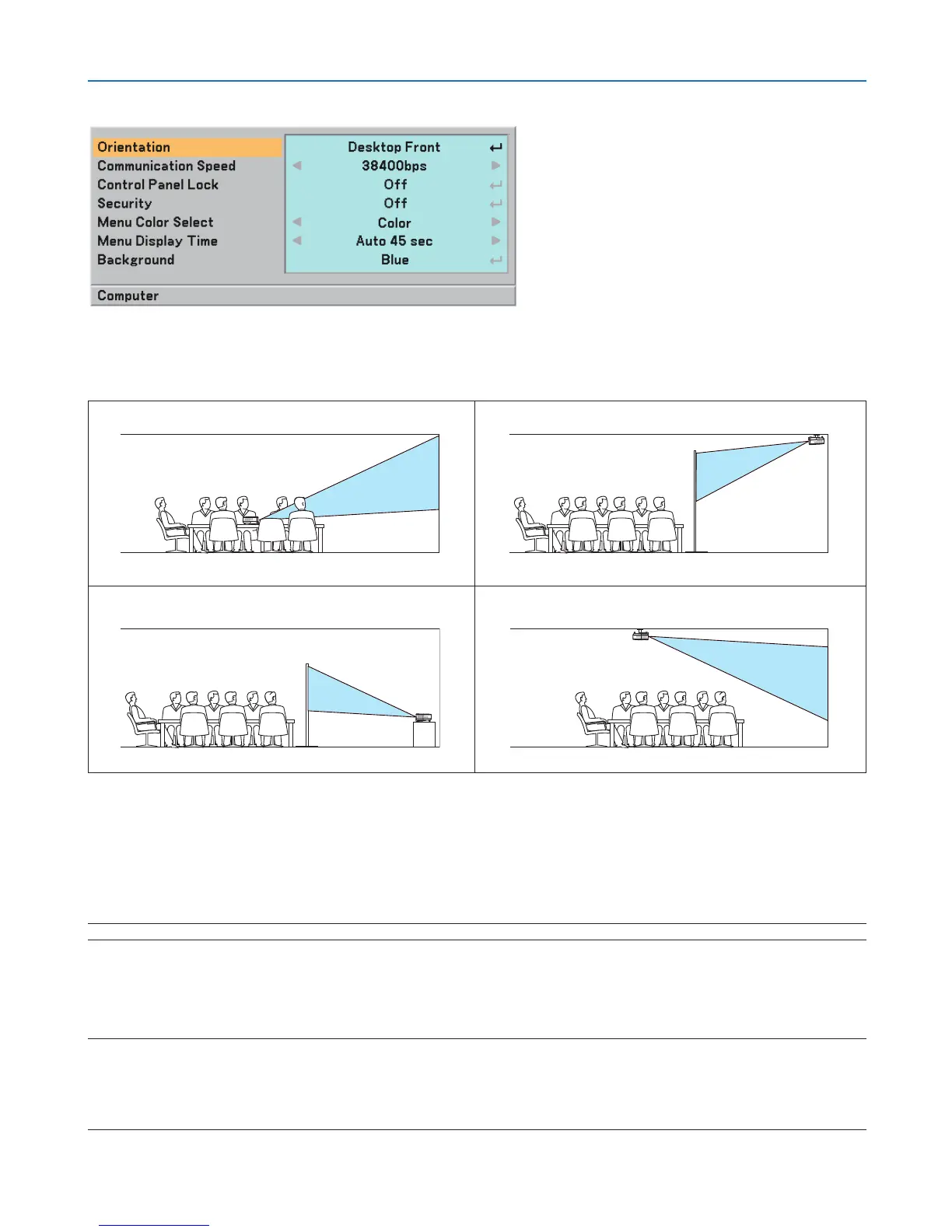 Selecting Projector Orientation [Orientation]