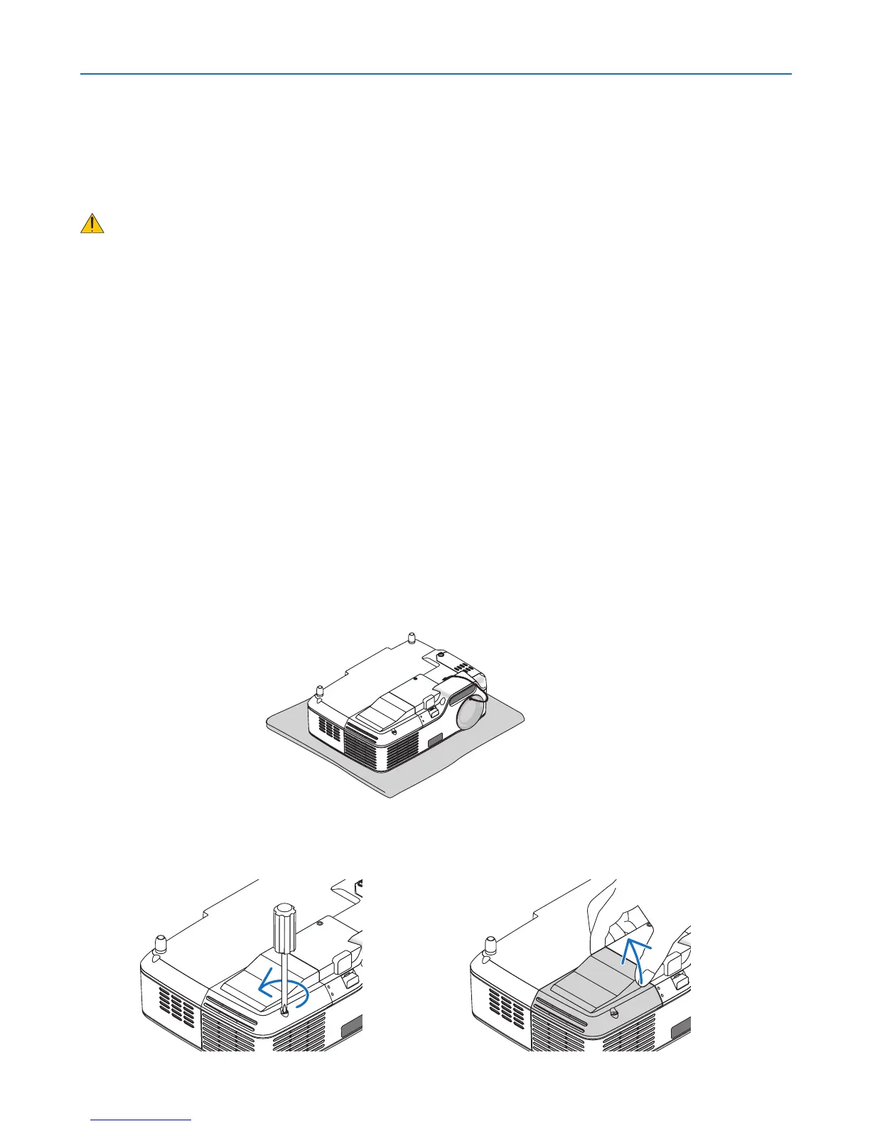 • DO NOT REMOVE ANY SCREWS except two lamp case screws. You could receive an electric shock.
