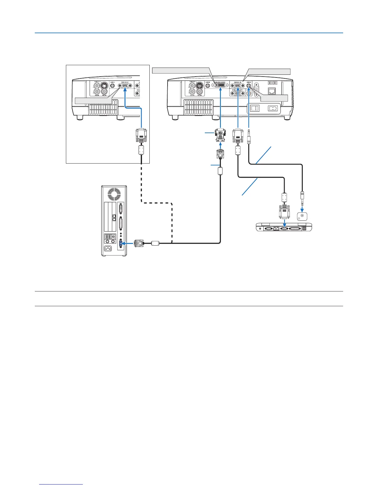 IfyouneedtousetwoanalogCOMPUTERinputssimultaneously,connectaVGAsignalcableasshownbelow.