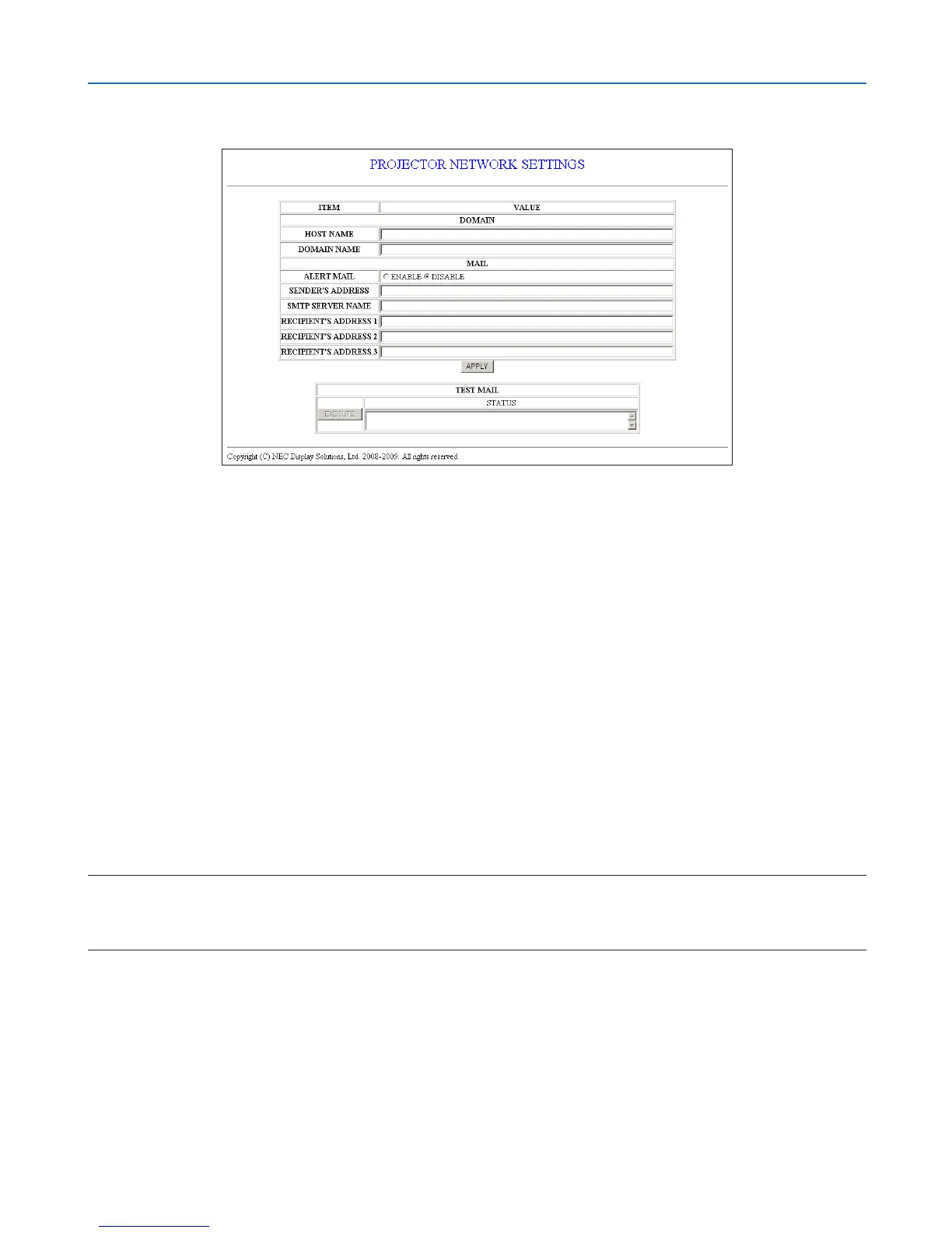 HOST NAME ............................ Type in the hostname of the network connected to the projector. Up to 60 alphanumeric char-