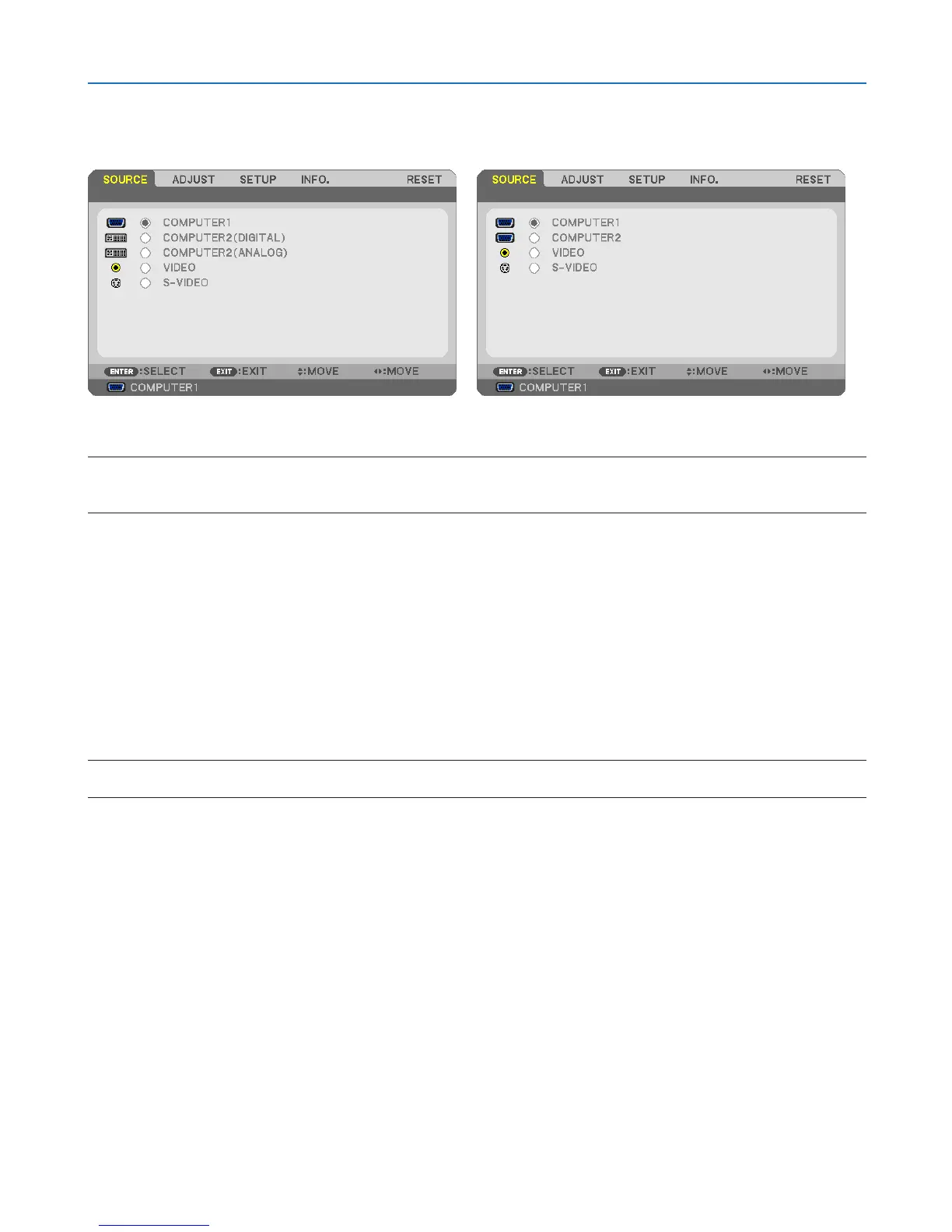 • WhenthecomponentinputsignalisconnectedtotheCOMPUTER1INconnector,select[COMPUTER1].