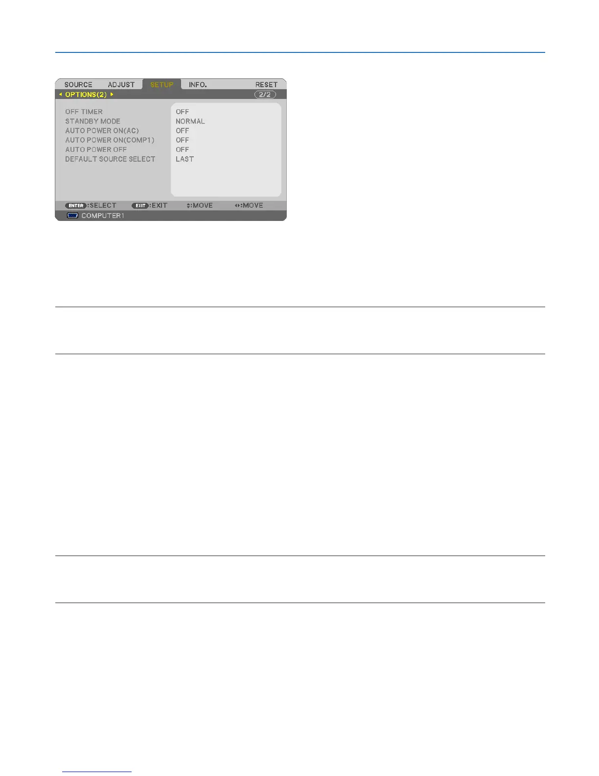 • When[CONTROLPANELLOCK],[CONTROLID],or[AUTOPOWERON(COMP1)]isturnedon,the[STANDBYMODE]settingis