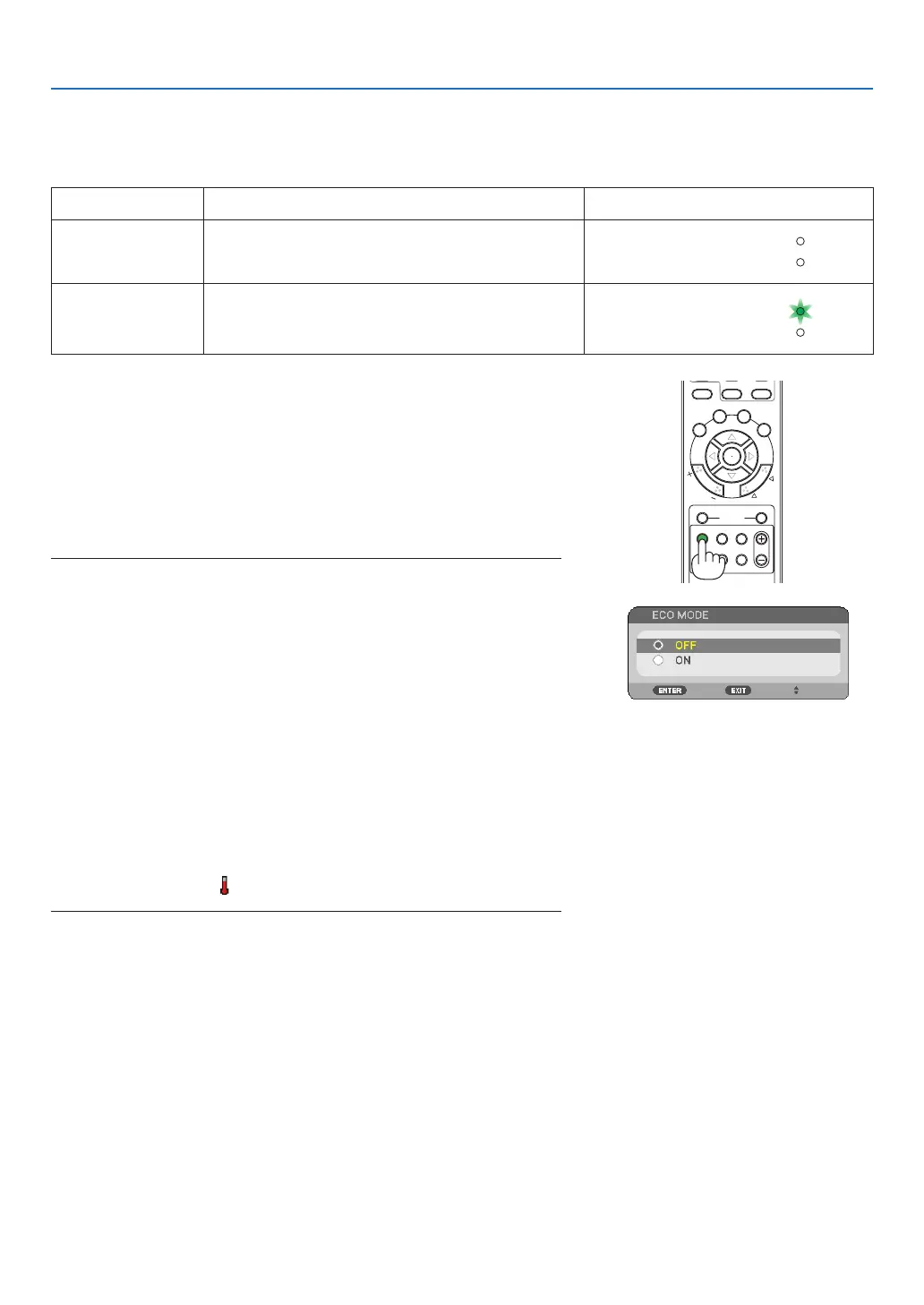 • Theprojectorwillalwaysenterintothe[ECOMODE][OFF]conditionfor60