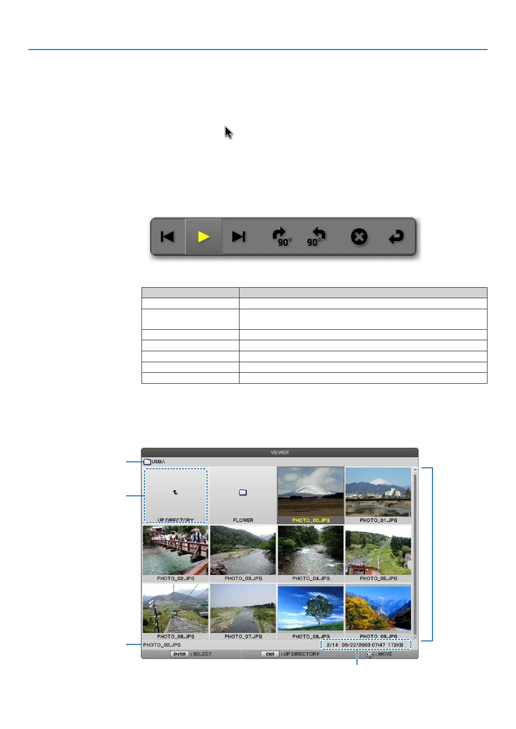 EXIT button ������������������������ Switches to the thumbnail screen�