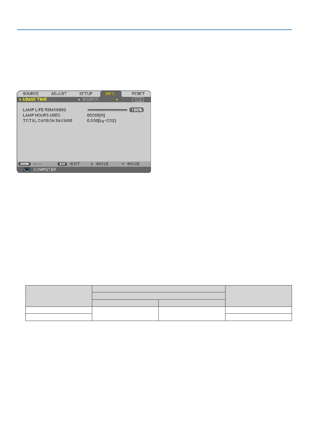 Thevalueinformsyouoftheamountoflampusage.Whentheremaininglamptimereaches0,theLAMPLIFE