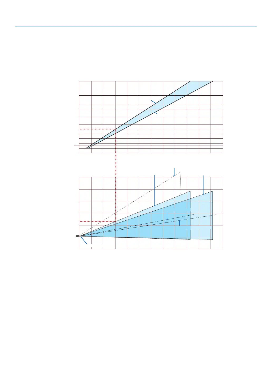 m (52"). The projection angle can be adjusted up to 10°. (The lower chart shows that the projector is placed in a