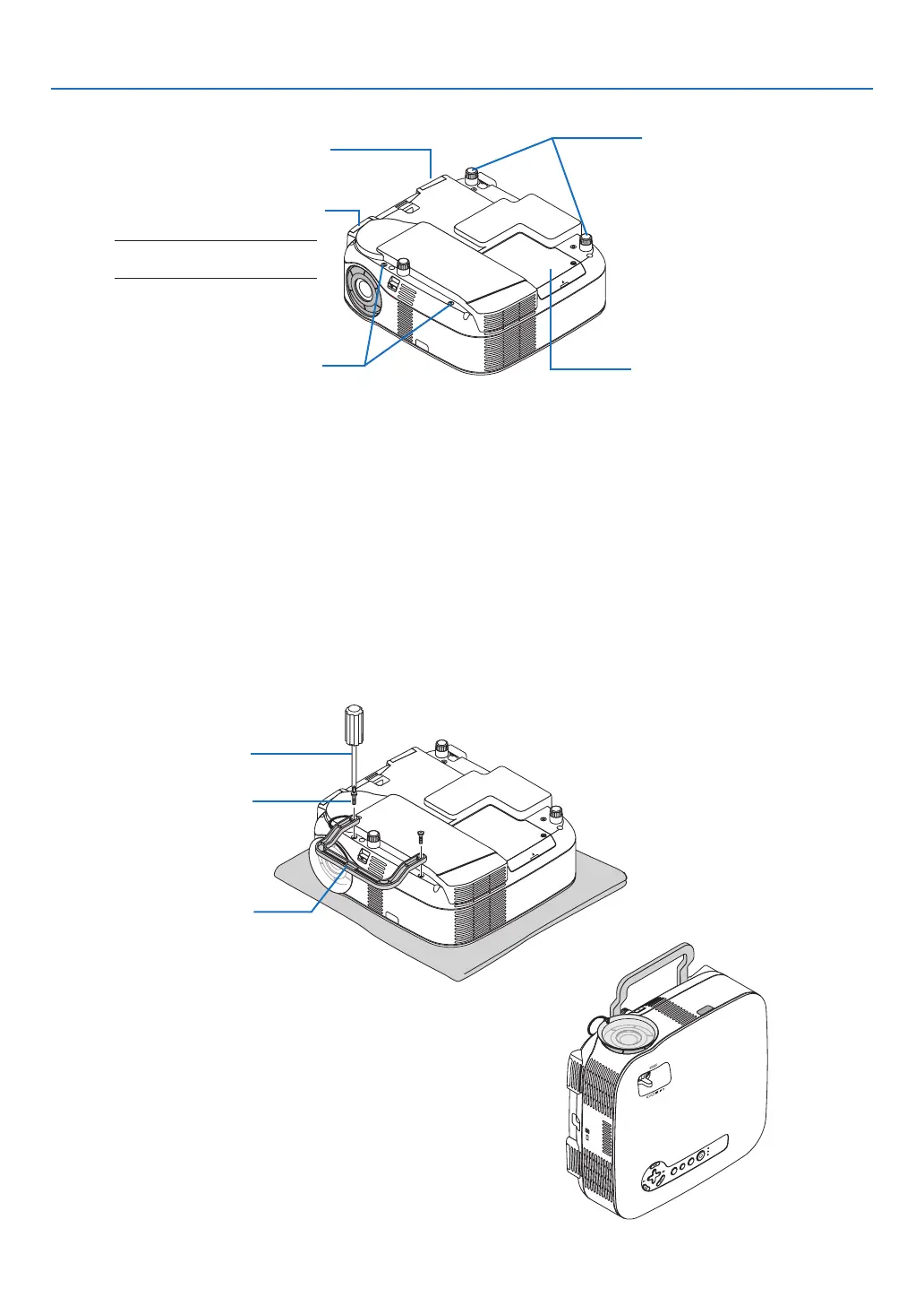You can carry the projector by attaching the supplied carrying handle securely to the projector.