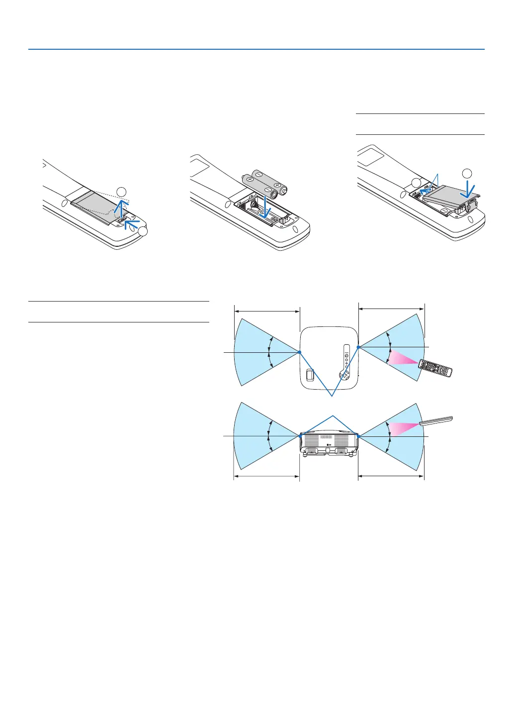 • If you will not be using the remote control for a long time, remove the batteries.