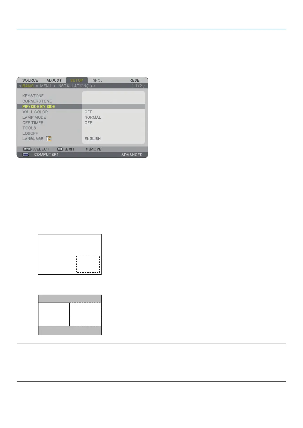 button to select [PIP] or [SIDE BY SIDE] and press the ENTER button.