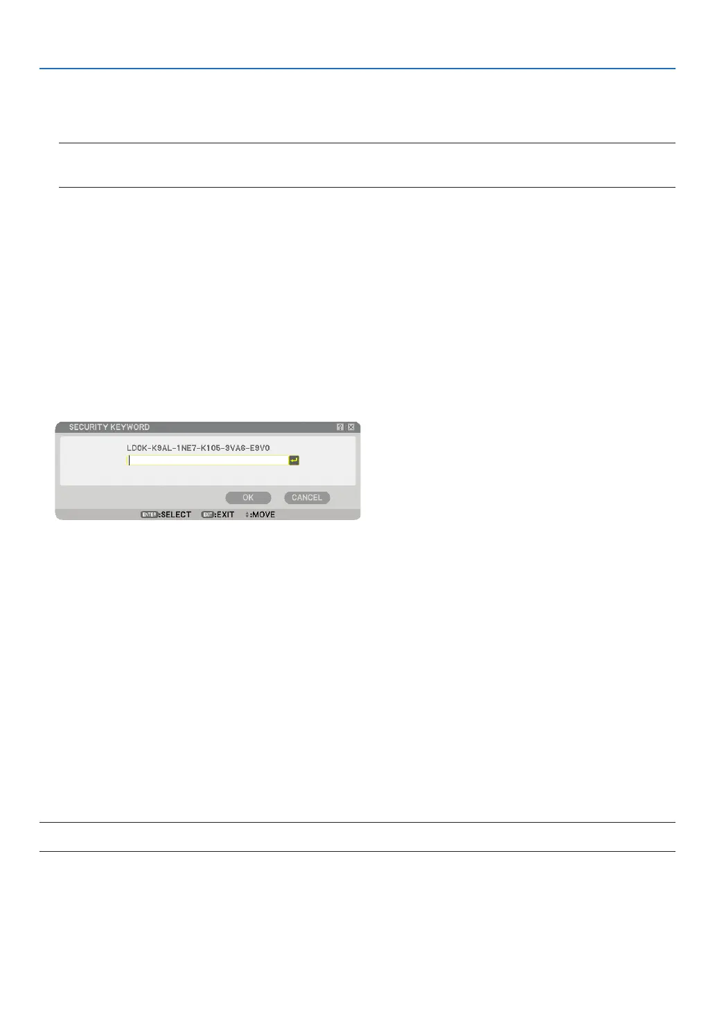 NOTE: Immediately after the projector has been turned on and the “PROJECTOR IS LOCKED! ENTER YOUR KEYWORD.” mes-
