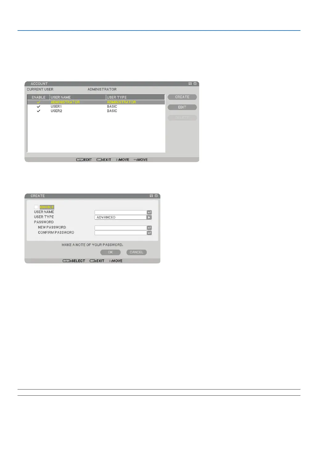 • A user name must be 16 alphanumeric characters or less (case sensitive).