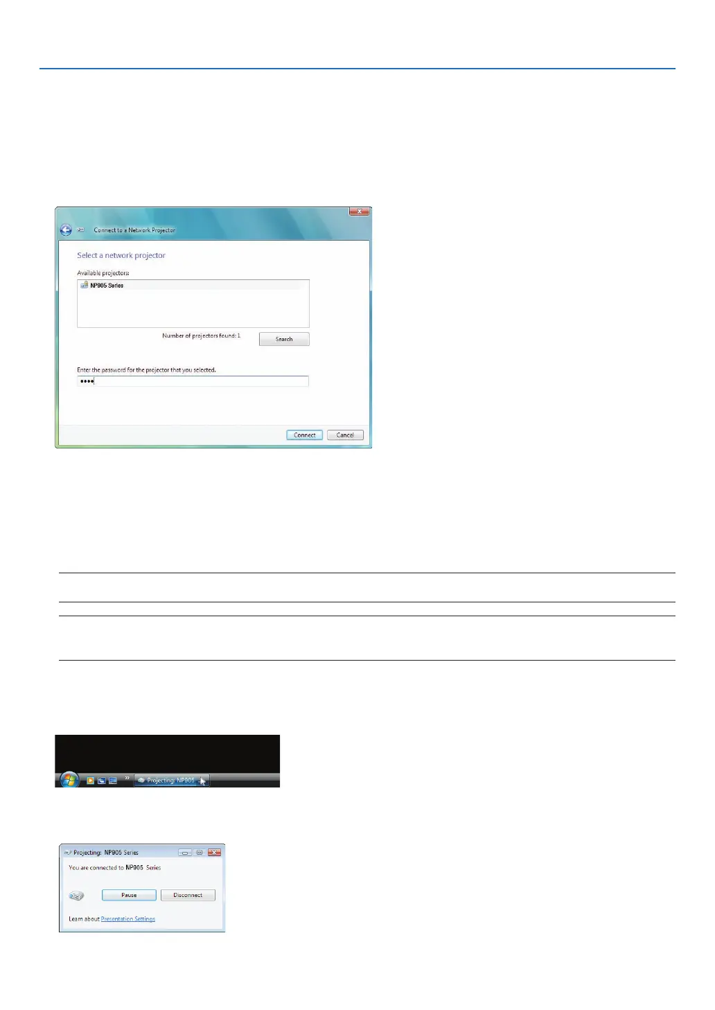 Vista screen and proceed to the step of operating the network projector. Selecting [No] will cancel operating