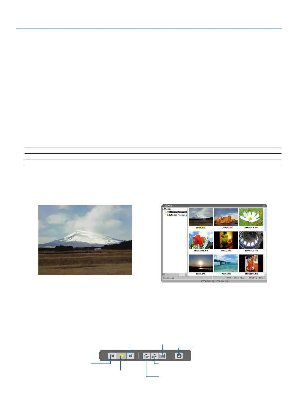 Pressing the MENU button during slide playback will display the control bar which allows you to operate a slide-