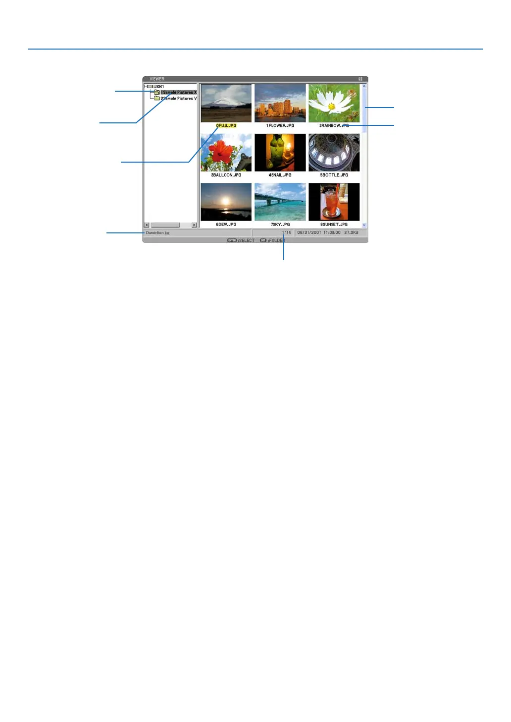 Thumbnail/file name .................Indicates thumbnails and names contained in a folder.