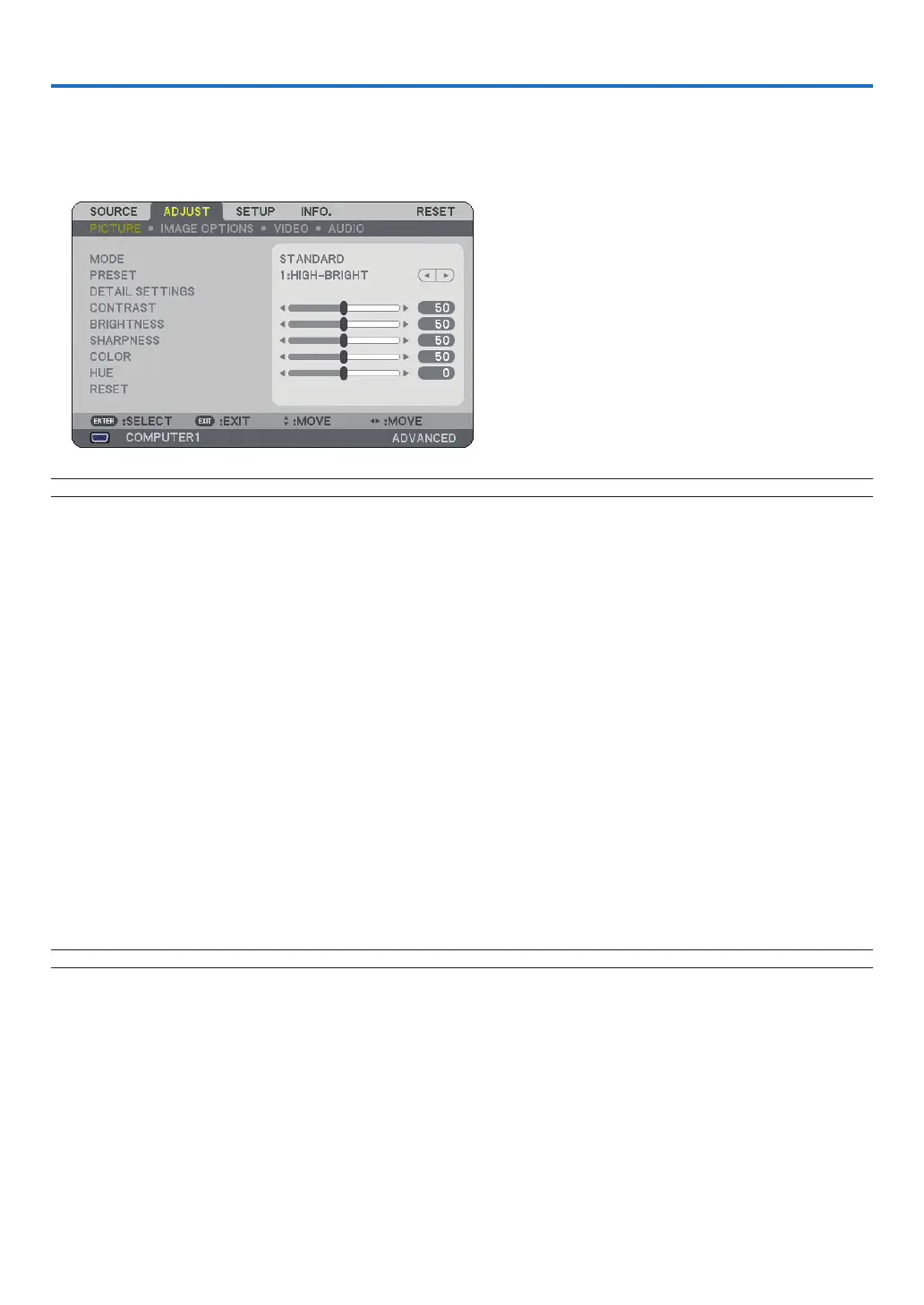 7. Repeat steps 2 -6 to adjust an additional item, or press the EXIT button on the remote control or the pro-