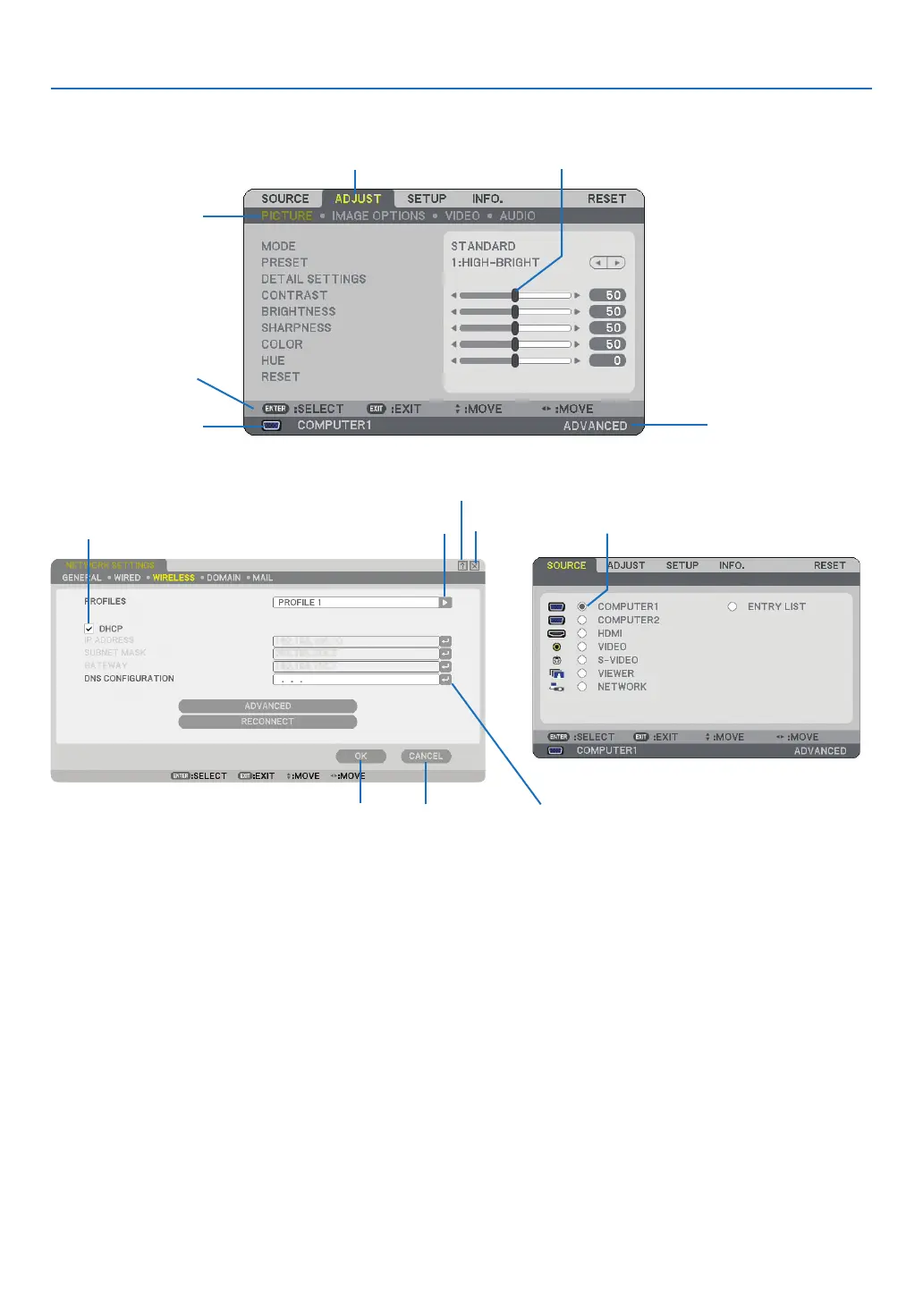 Slide bar ................ Indicates settings or the direction of adjustment.