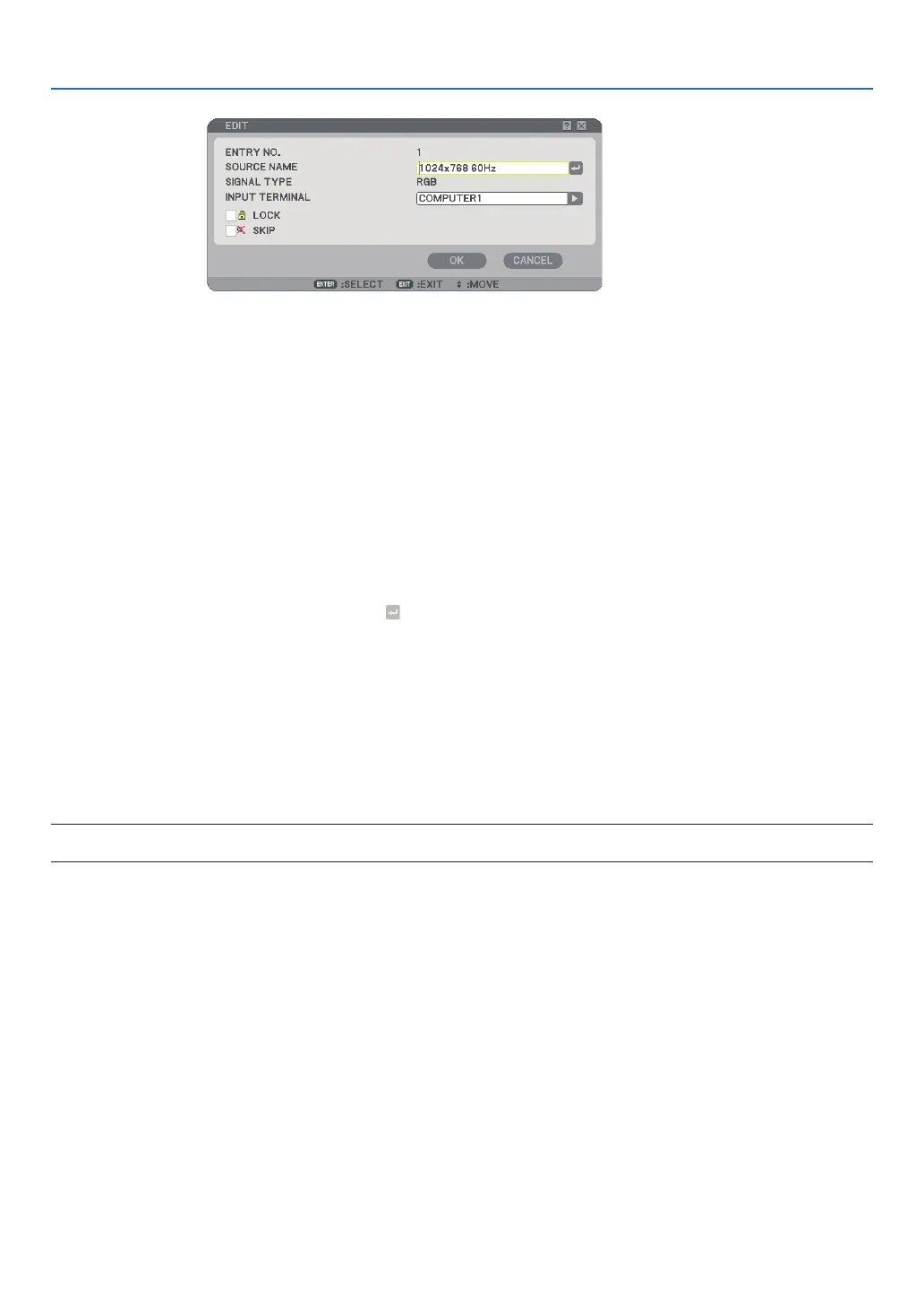 NOTE: When all the signals in the [ENTRY LIST] are deleted, the currently projected signal will be also deleted except locked sig-