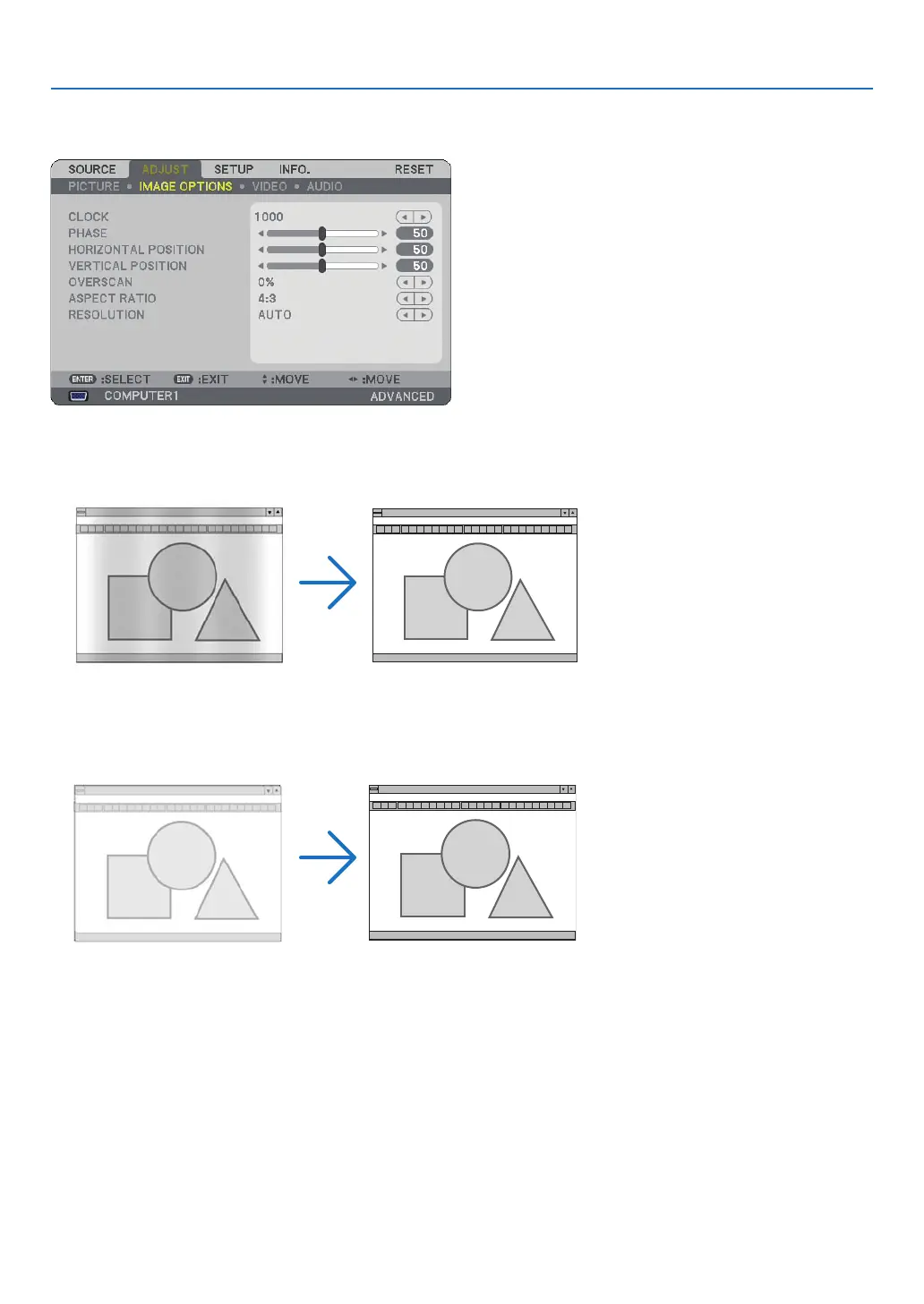 PHASE ................... Use this item to adjust the clock phase or to reduce video noise, dot interference or cross talk. (This is