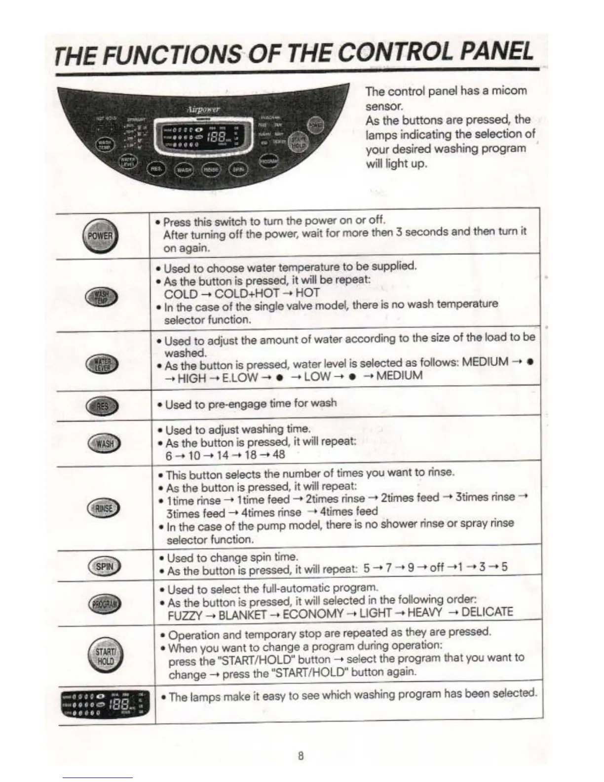 NEC NW891 - THE FUNCTIONS OF THE CONTROL PANEL