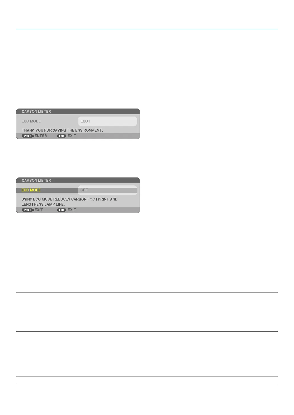 PressingtheENTERbuttonwilldisplaythe[ECOMODE]screen.(→page28)