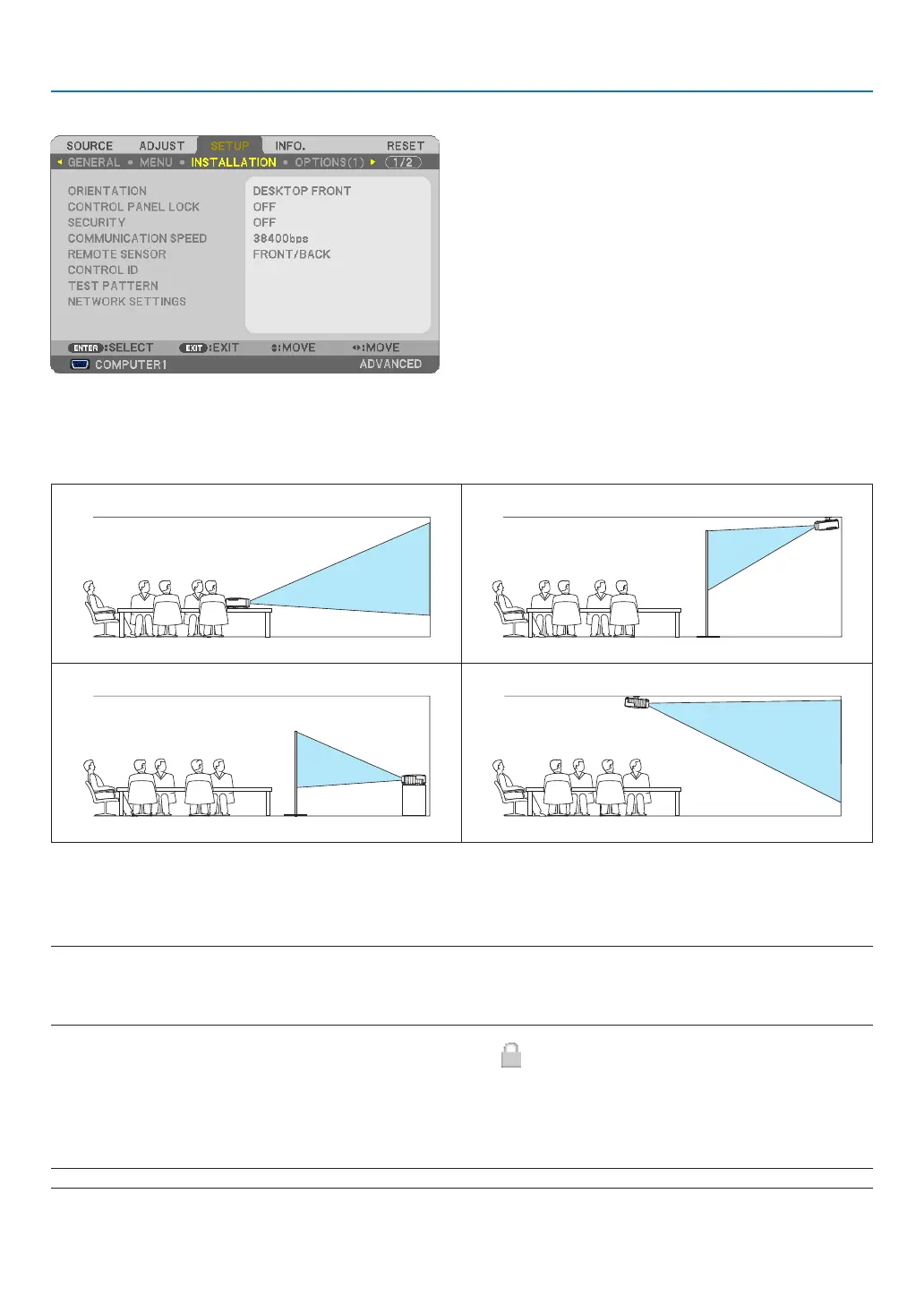 Selecting Projector Orientation [ORIENTATION]