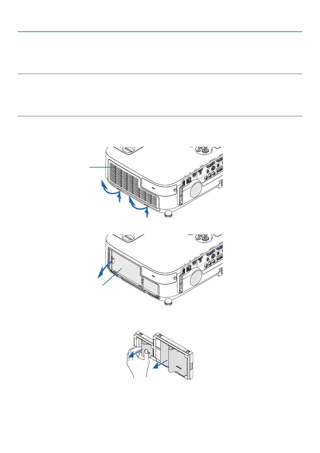 • Beforereplacingthelters,wipeoffdustanddirtfromtheprojectorcabinet.