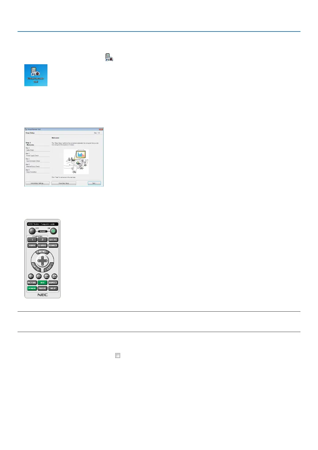 • Click[Start]→[AllPrograms]or[Programs]→[NECProjectorUserSupportware]→[VirtualRemoteTool]