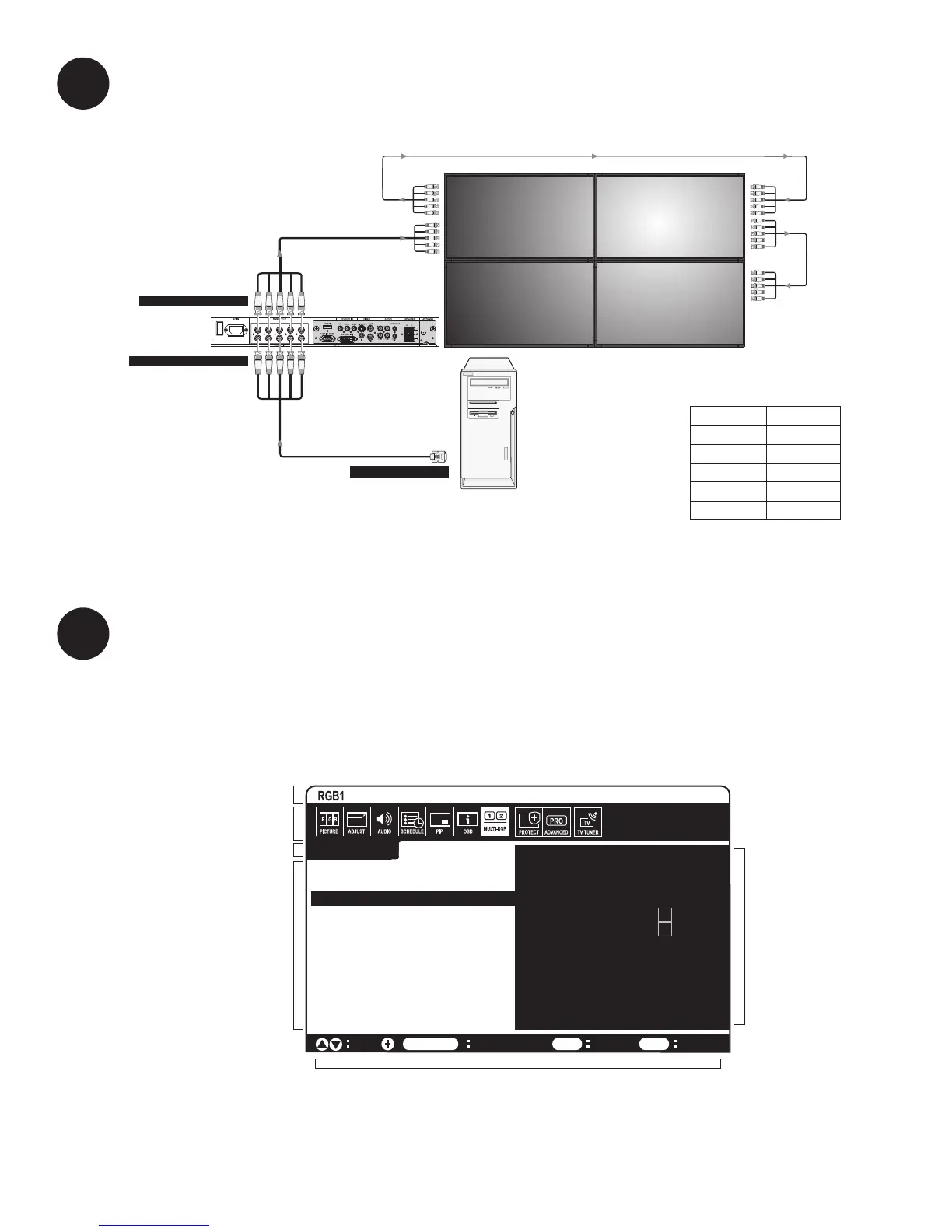 establezca los parámetros necesarios que coinciden con la confi guración de la pantalla de video 2x2.